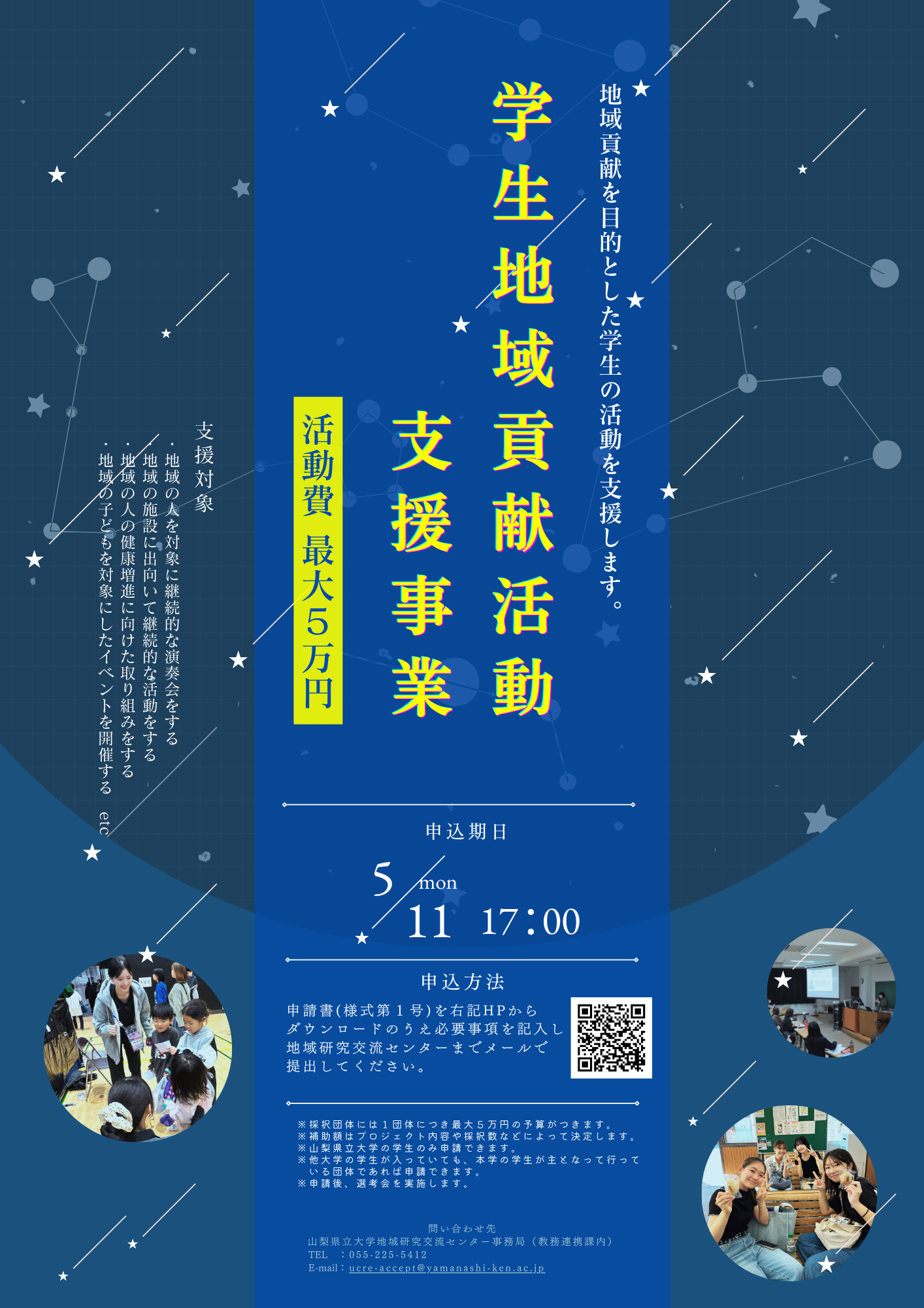 ご不明な点等は、地域研究交流センター(ucre-accept@yamanashi-ken.ac.jp)までお気兼ねなくお問い合わせください。
