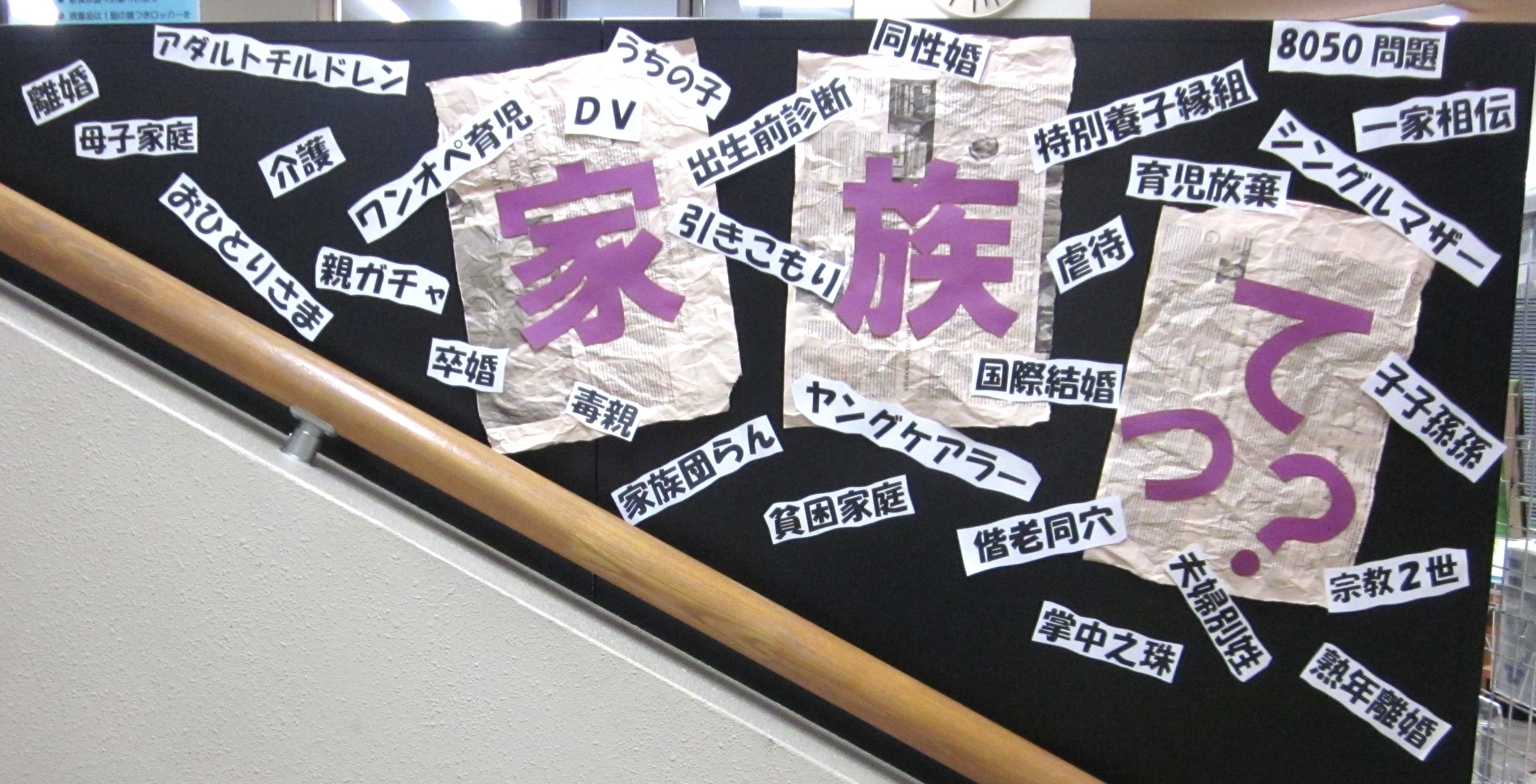 長い夏もようやく終わり、秋めいてきた今日この頃、飯田図書館では「家族」をテーマに展示を始めました。