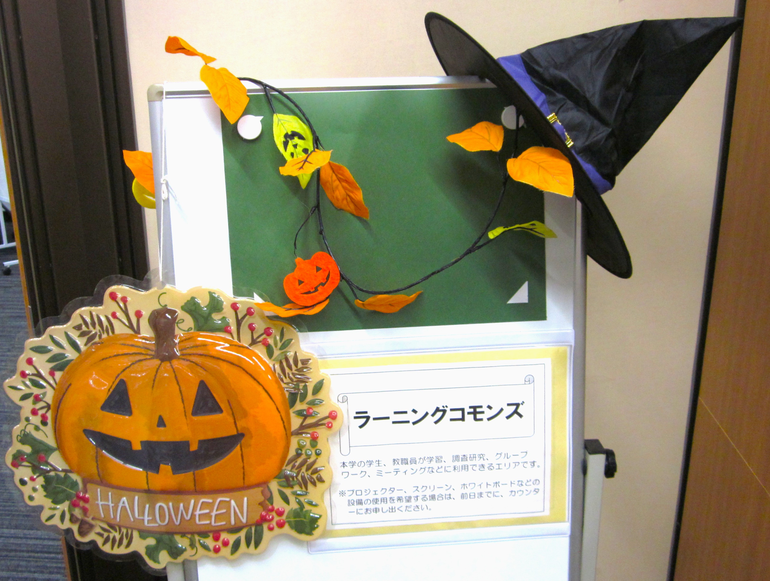 ライブラリースタッフが、LCのいろいろな場所にかぼちゃやこうもり、おばけを仕掛けています。