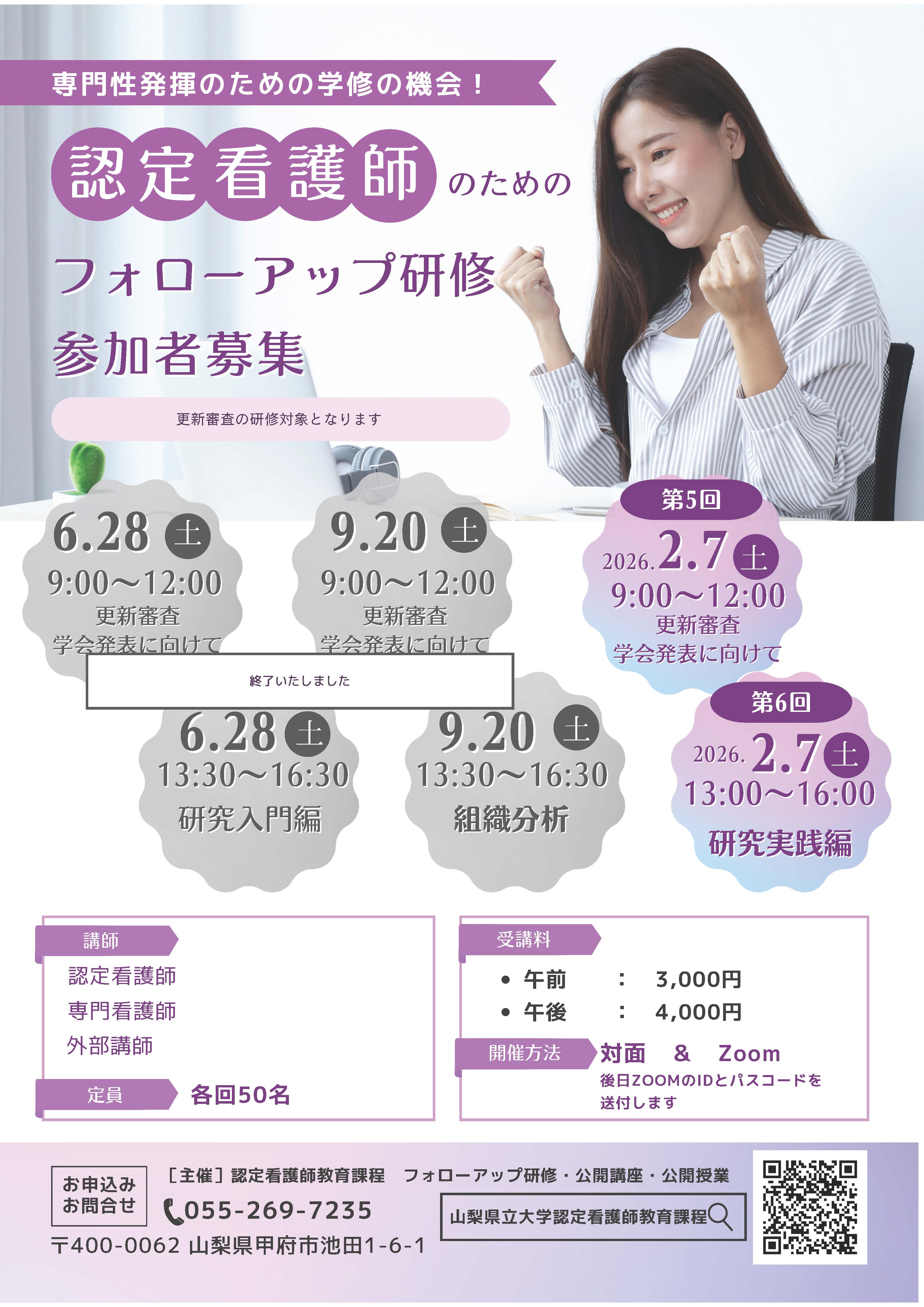 | お問合せ先 | 山梨県立大学 認定看護師教育課程事務局 TEL:055-269-7235(平日9:00~17:00) FAX:055-269-7236 E-mail:cnec+fu@yamanashi-ken.ac.jp |
