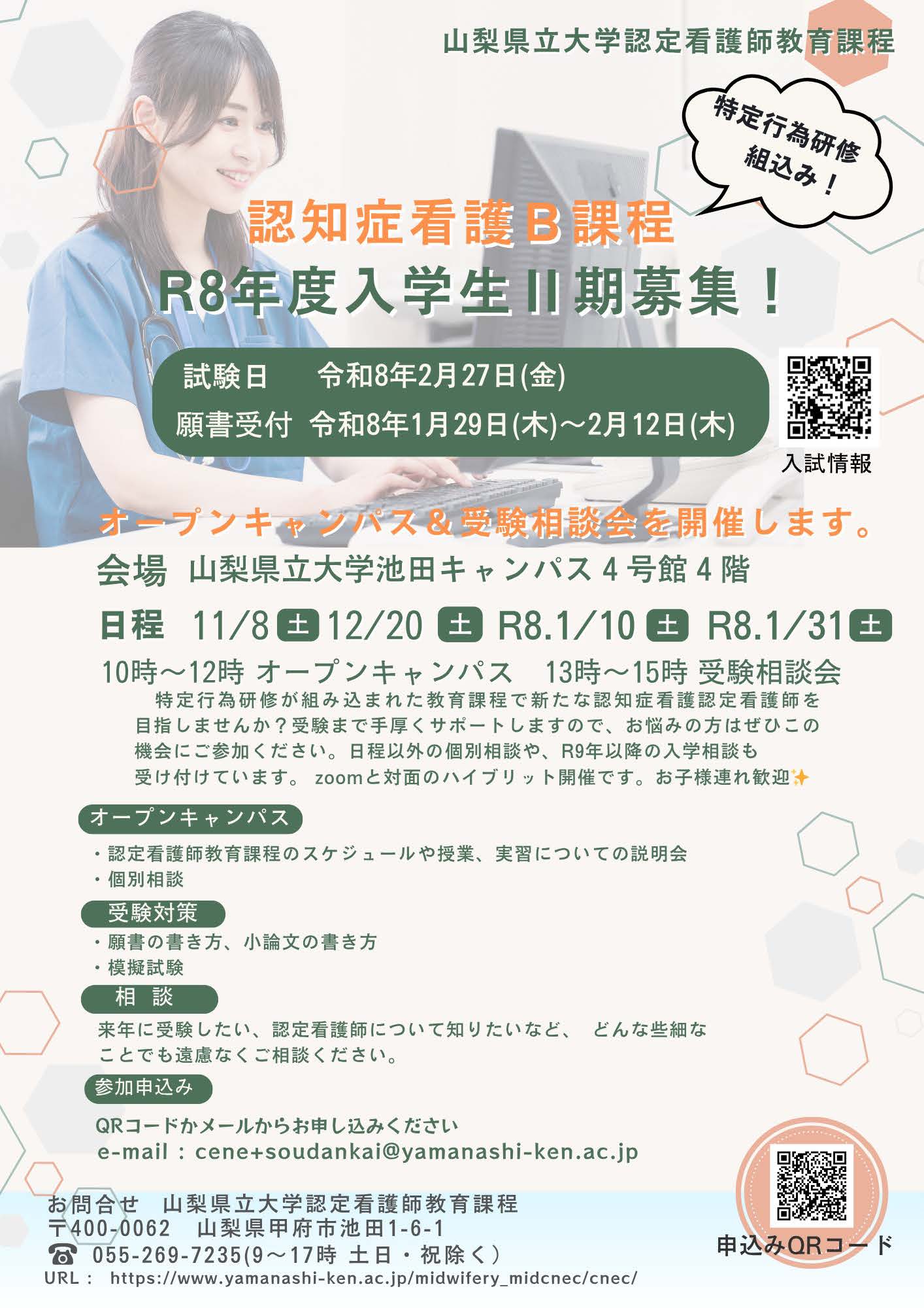 | 主催 | 山梨県立大学 認定看護師教育課程 |