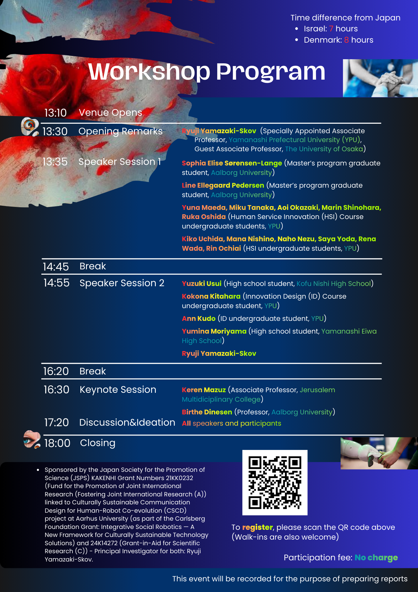 Sponsored by the Japan Society for the Promotion of Science (JSPS) KAKENHI Grant Numbers 21KK0232 (Fund for the Promotion of Joint International Research (Fostering Joint International Research (A)) linked to Culturally Sustainable Communication Design for Human-Robot Co-evolution (CSCD) project at Aarhus University (as part of the Carlsberg Foundation Grant: Integrative Social Robotics — A New Framework for Culturally Sustainable Technology Solutions) and 24K14272 (Grant-in-Aid for Scientific Research (C)) - Principal Investigator for both: Ryuji Yamazaki-Skov.