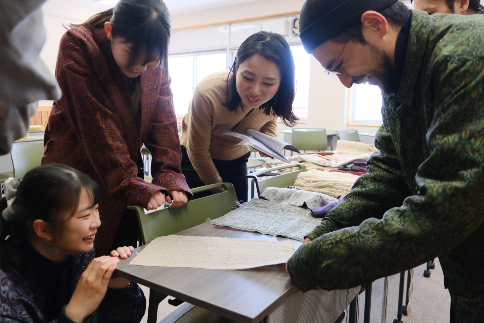 イベントの後半では、国際交流やワークショップなどを含む今後の協働の可能性について、創発デザインコースの学生を交えて議論する時間を持ちました。本イベントでは実際に学生が布や服に触れ、着ることをつうじて「地域の風土に合わせた服づくり」を学ぶ、大変有意義な機会になりました。