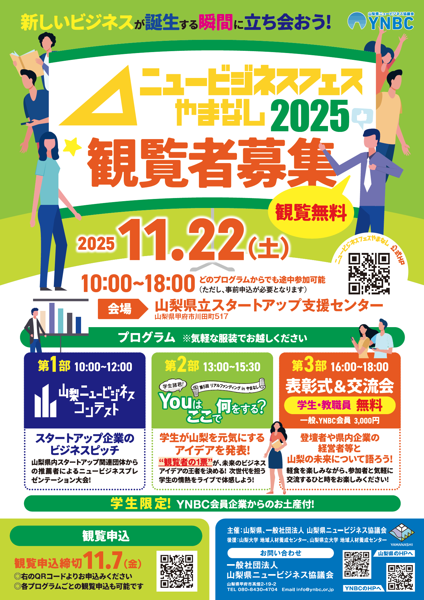 下記のニュービジネスフェスやまなし2025のHPよりお申込みください。