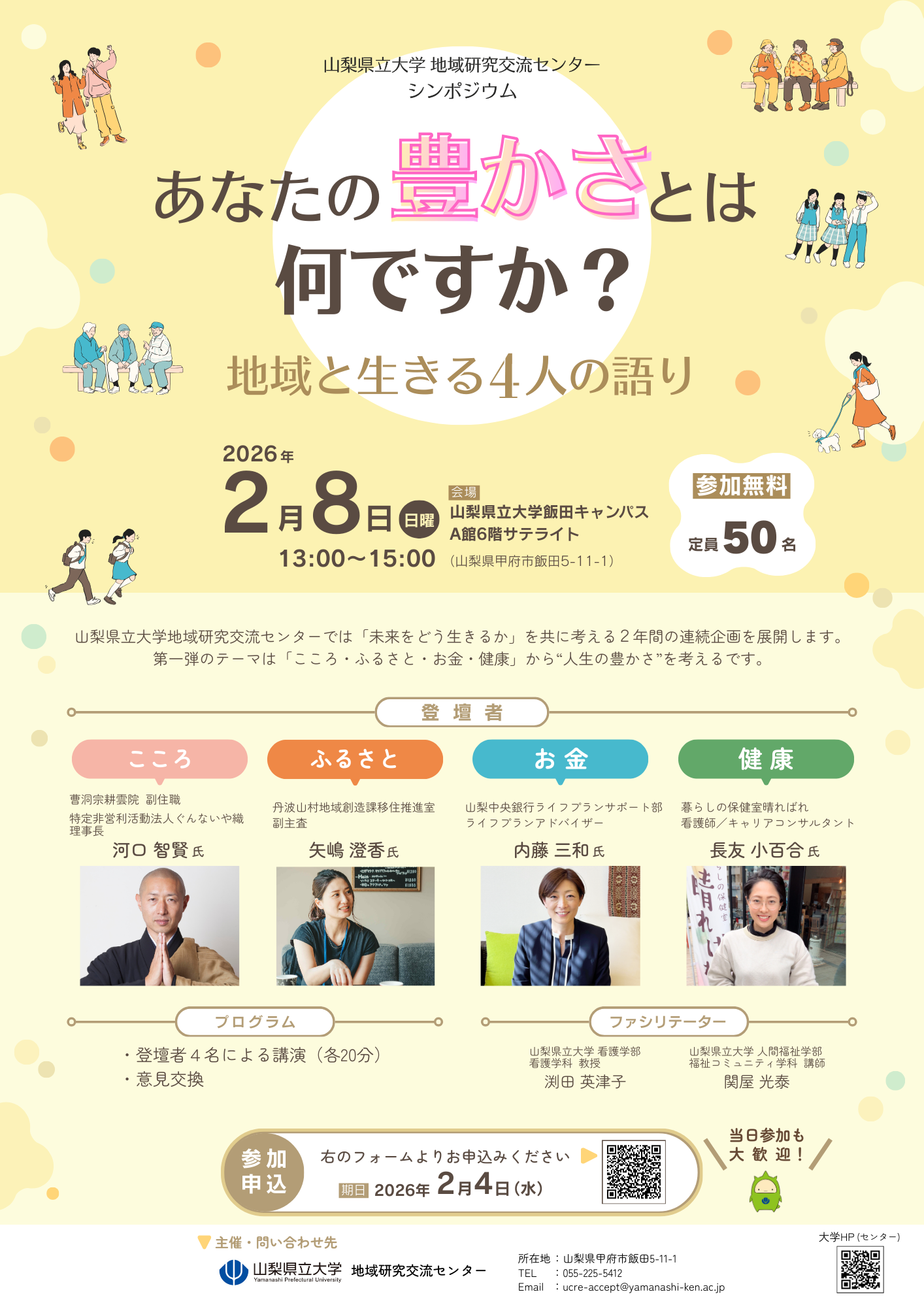 地域研究交流センターシンポジウム「あなたの豊かさとは何ですか?地域と生きる4人の語り」の開催について(R8/2/8)
