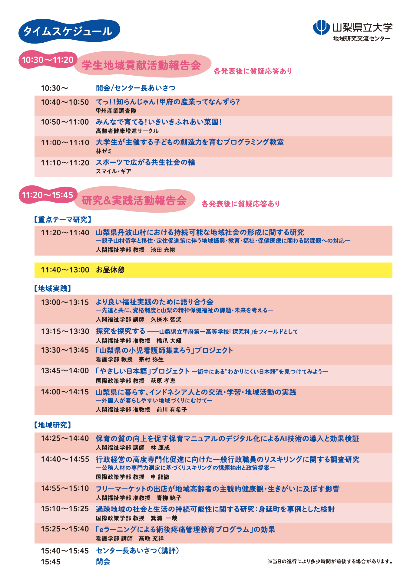 令和7年度山梨県立大学地域研究交流センター成果報告会開催のお知らせ(R8/3/18)