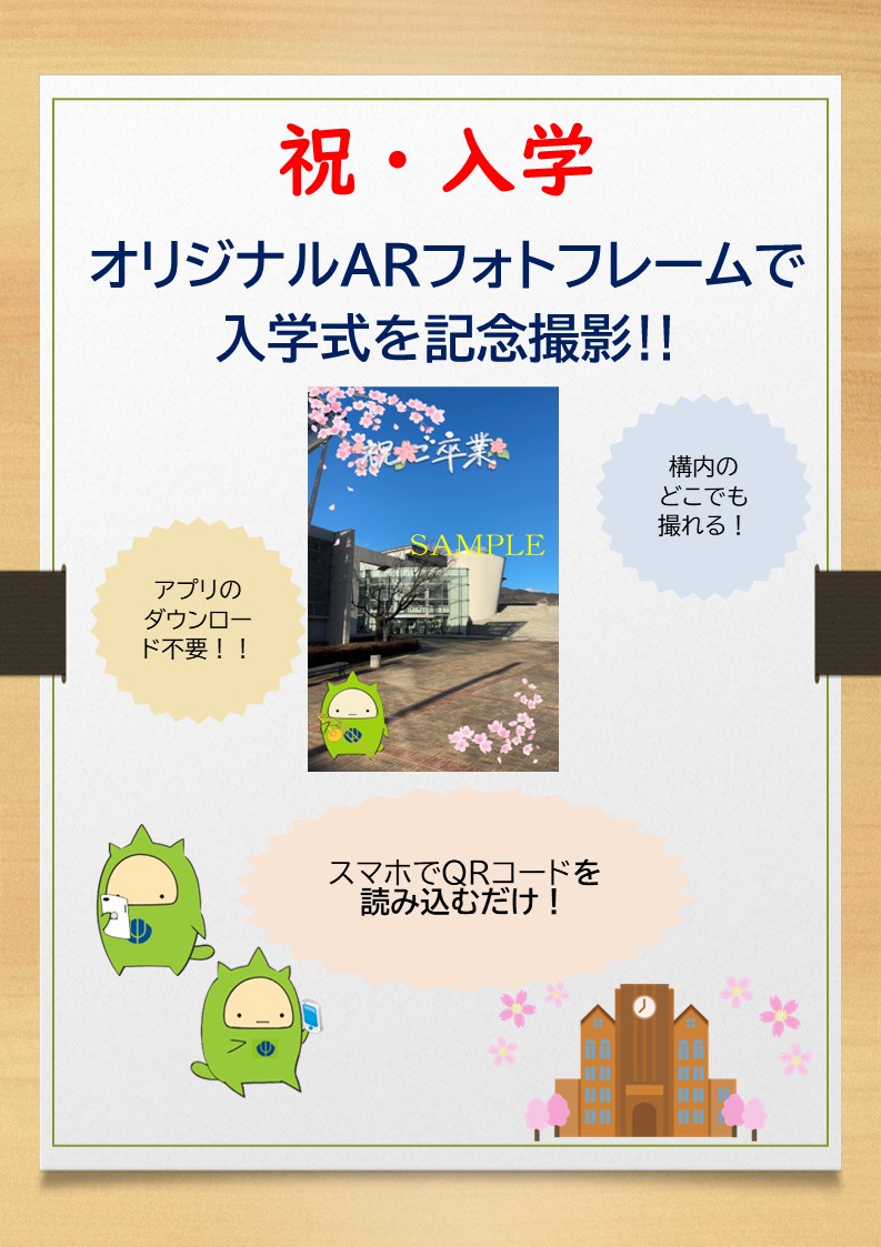 山梨県立大学では令和8年度入学式に合わせ、AR(拡張現実)技術を活用したキャンパス型フォトスポットを導入します。フォトフレームのパターンは全10種類‼  在校生が新入生への祝意をこめて、フレームをデザインしました。