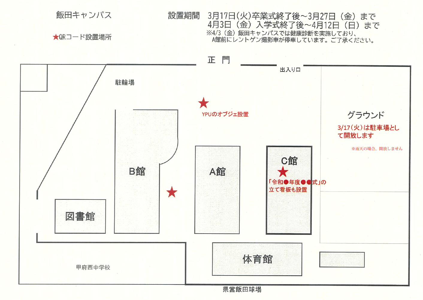 QRコード掲示場所(飯田キャンパス)