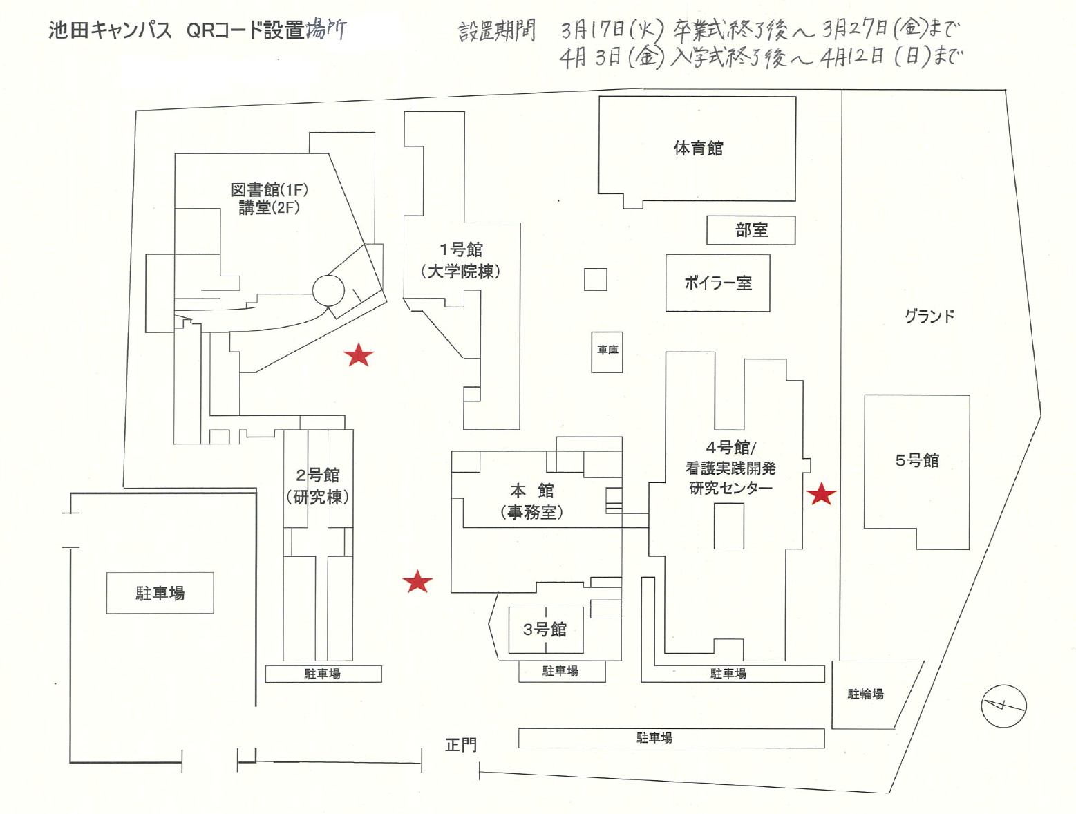 QRコード掲示場所(池田キャンパス)