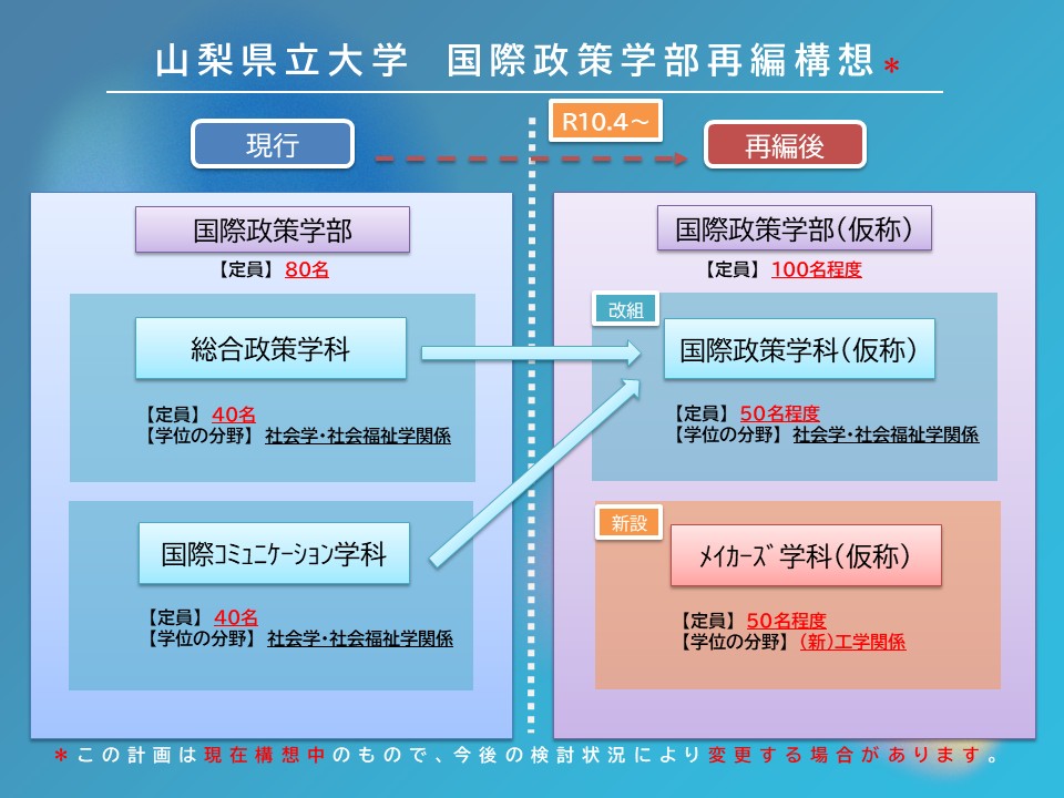 本日、山梨県知事より、山梨県独自の技術系人材育成の枠組みとして、山梨県立甲府工業高等学校の新学科と本学の「メイカーズ学科(仮称)」を接続する「7年一貫教育プログラム」構想が発表されました。これに対する本学のコメントは、以下のとおりです。